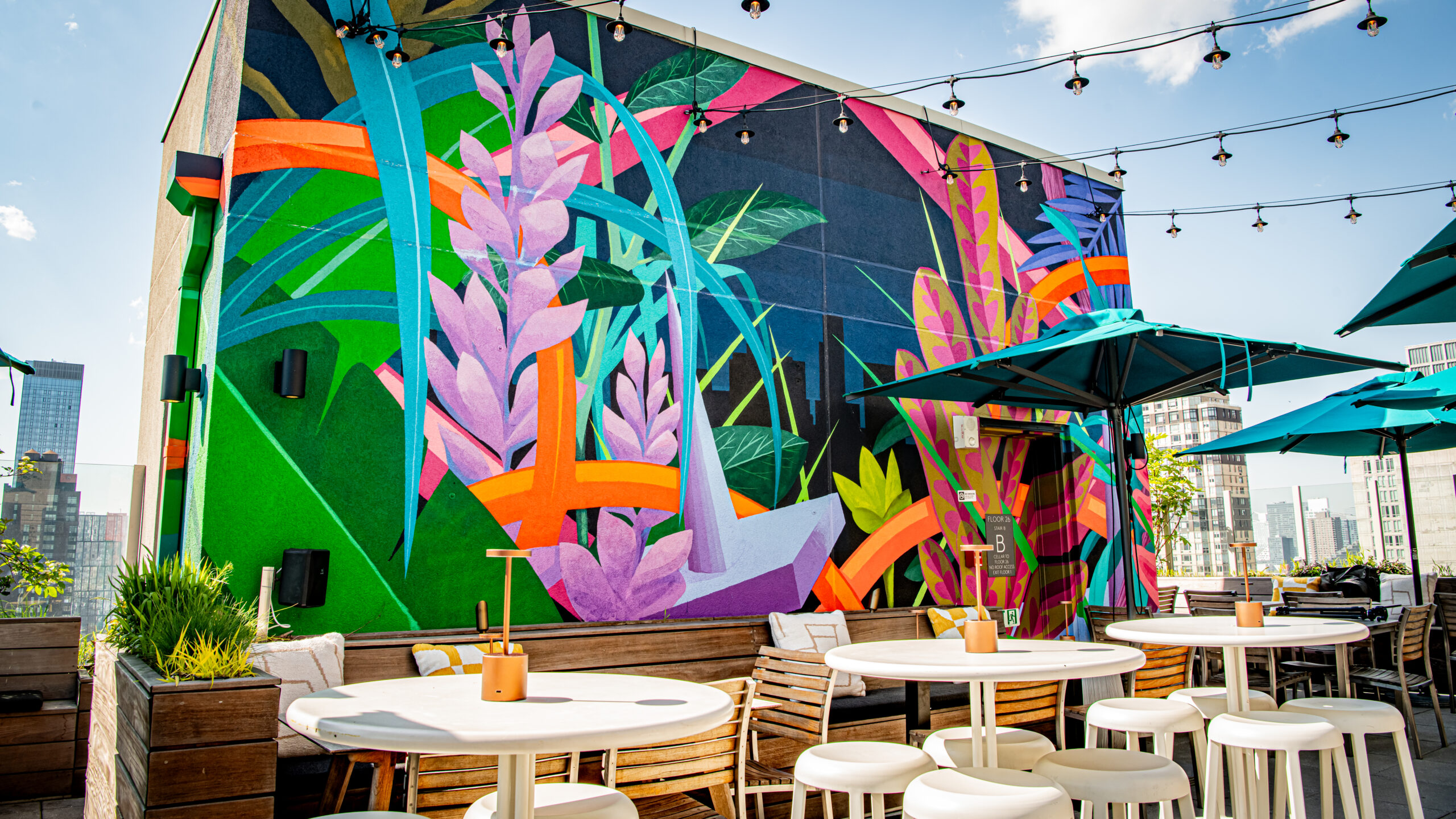 Closed until the 2026 season. ART Midtown combines sweeping city views with vibrant cocktails and a lively rooftop atmosphere. Guests gather here for sunset drinks, weekend nights, and casual celebrations. It is one of the most welcoming rooftop bars near Hudson Yards and Times Square.