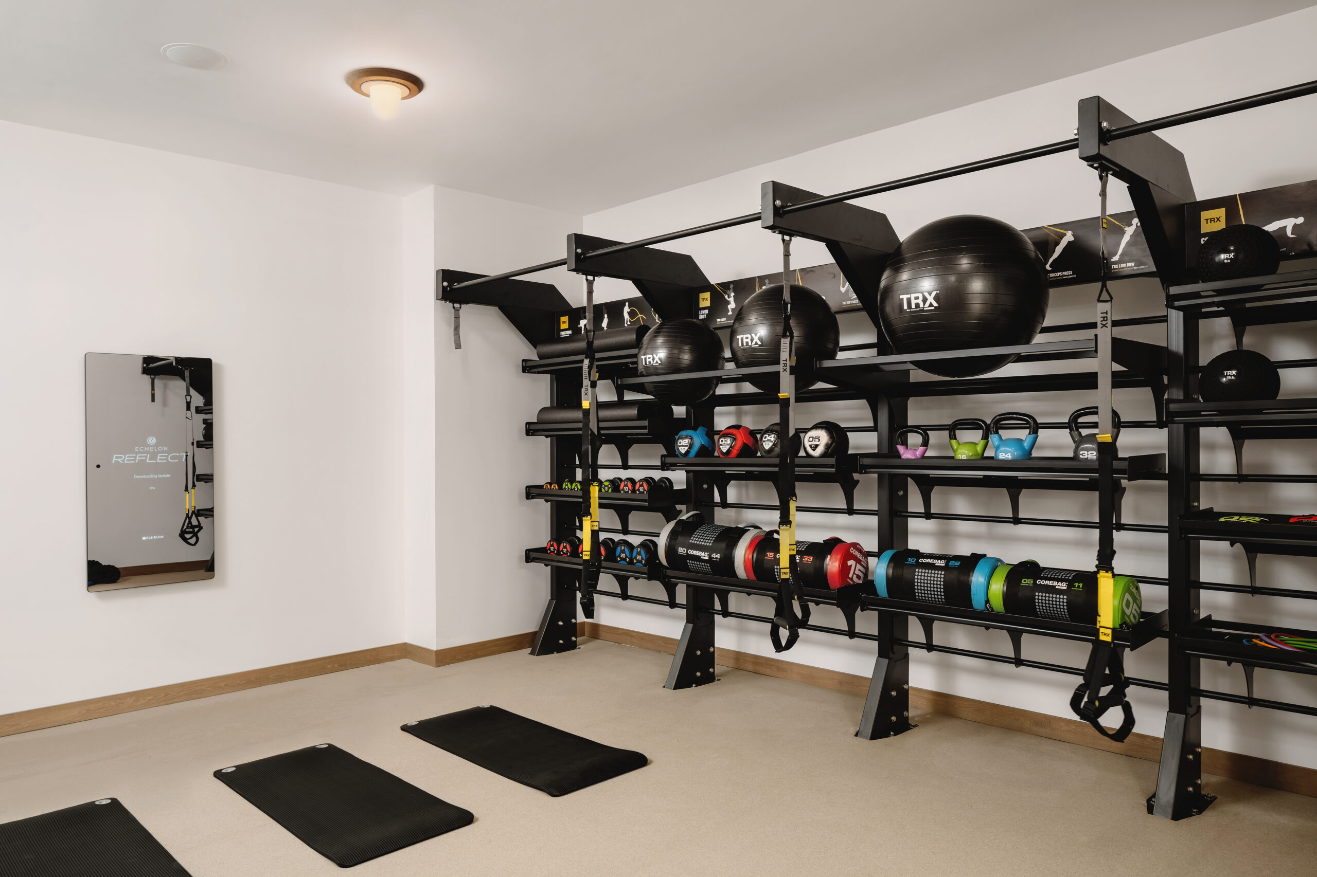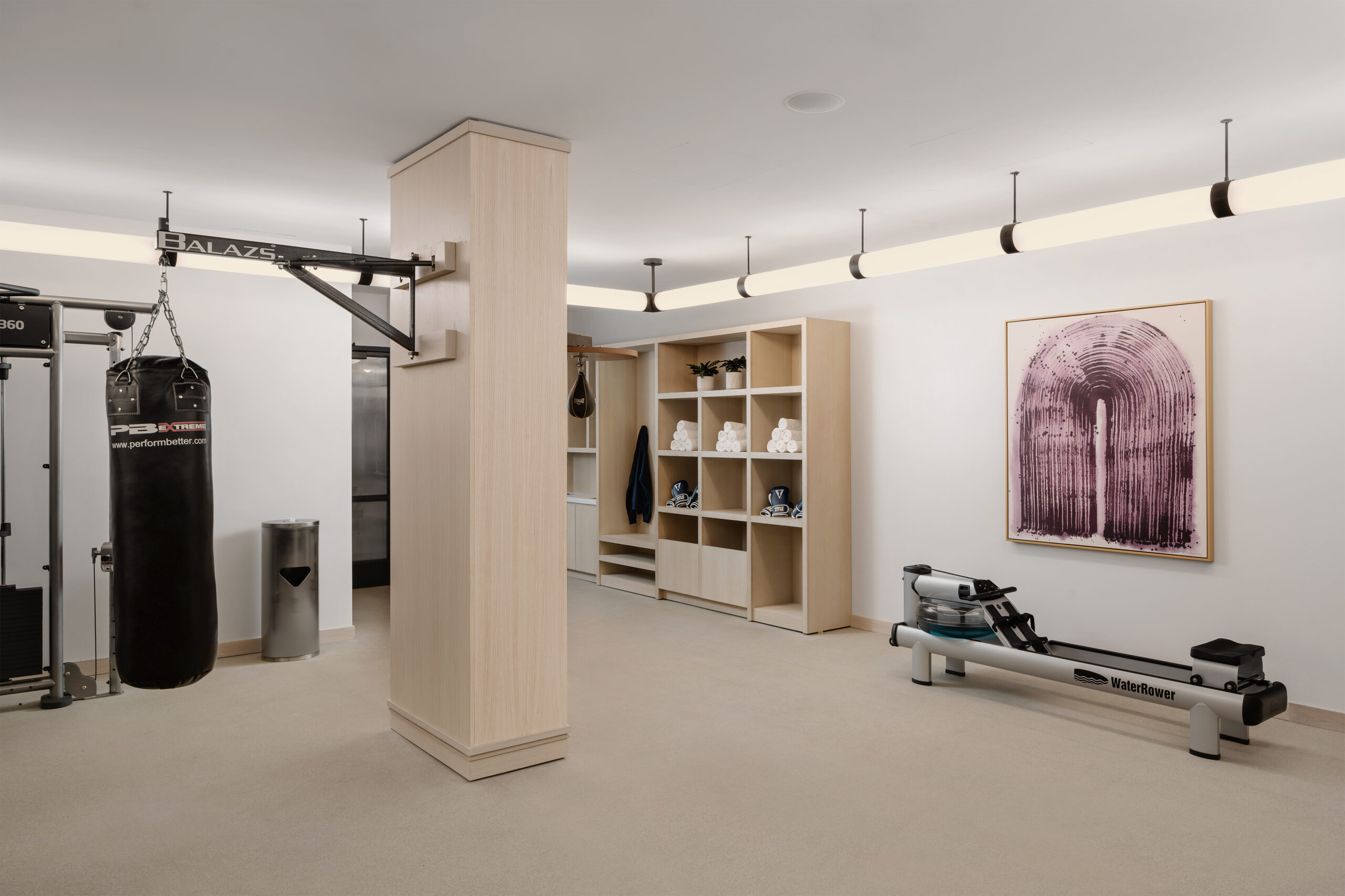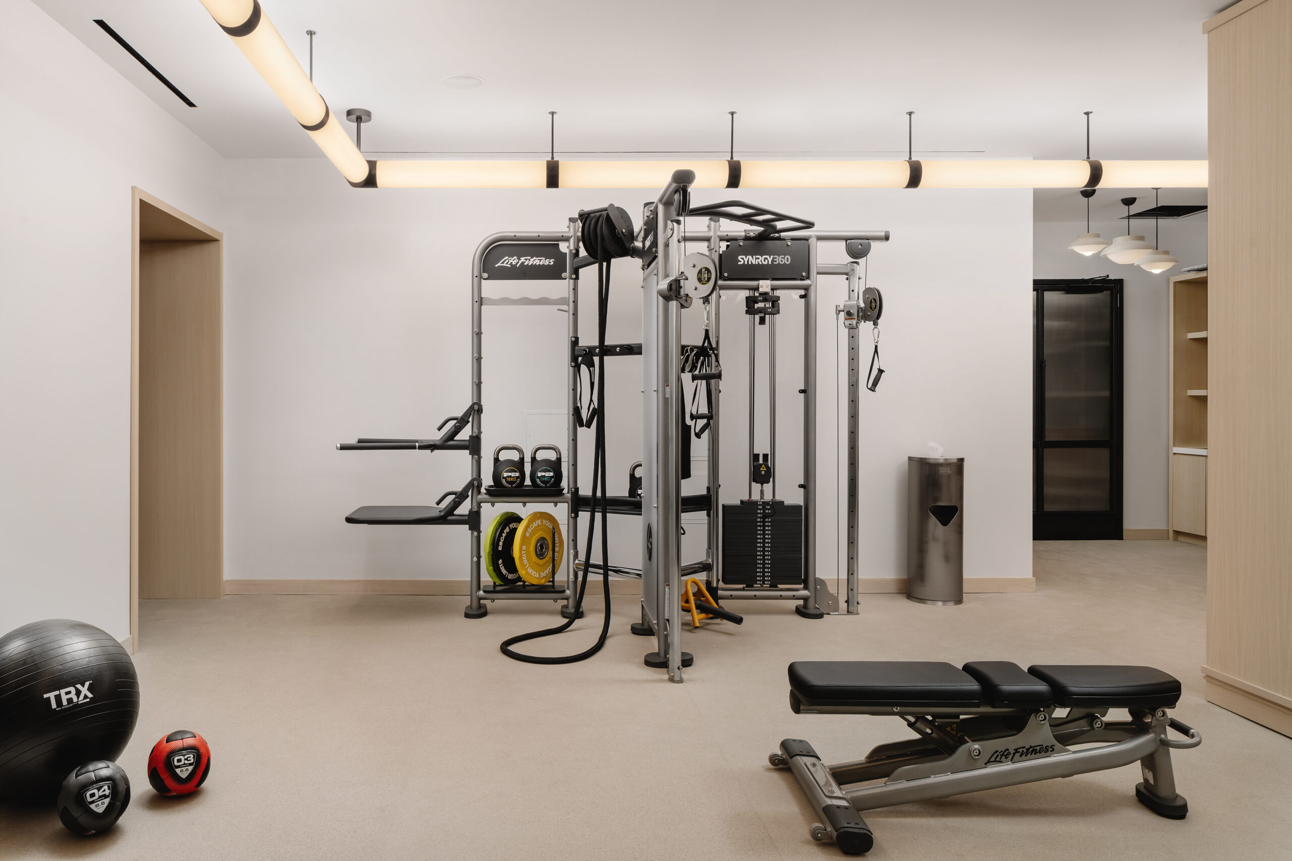 Our gym is your cardio and strength-training HQ, with a range of state-of-the-art Life Fitness equipment at the ready. Hit the treadmill, rower, or the elliptical, or log on to your favorite Peloton workout on our bikes. Boxing bags, weights, and ropes are at the ready if you’re building muscle, and yoga mats and a ballet barre will set you up for conditioning and cool-downs.