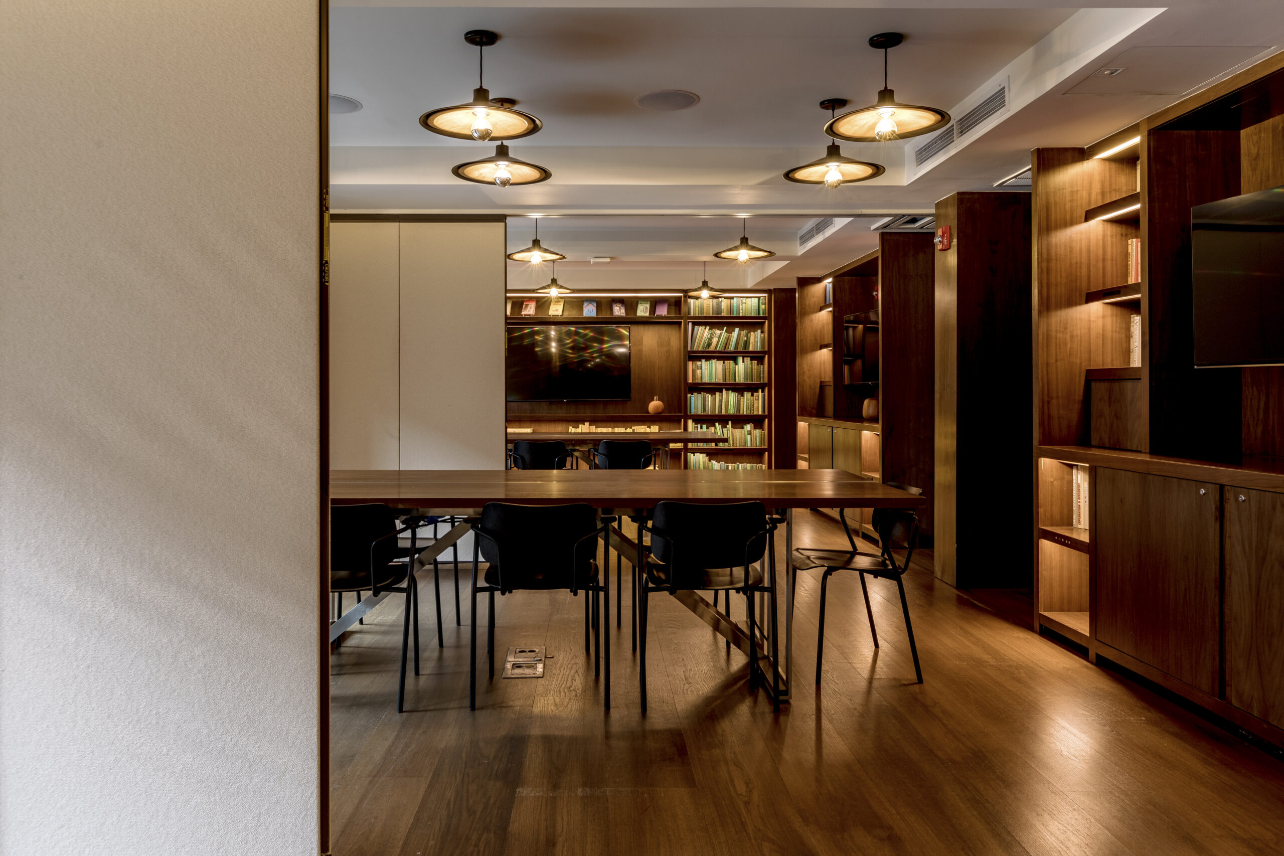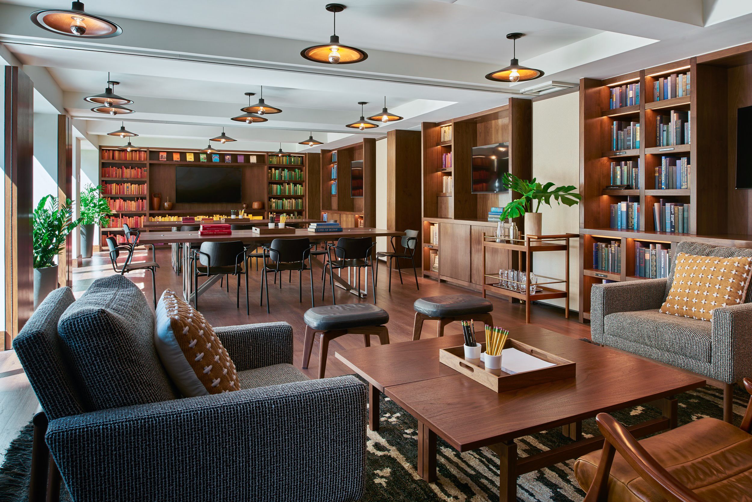 Tucked away on the hotel’s second floor, the Studios and adjoining Terrace are a one-of-a-kind event space in NYC. Wood-paneled walls lined with a colorful selection of books make for an elegant