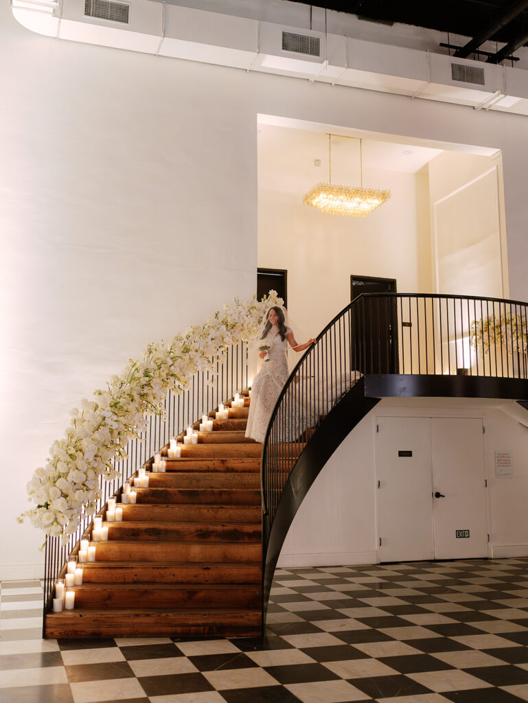 Featuring herringbone wood floors with marble details, artistic brass chandeliers, and a grand staircase, the Ballroom provides a timeless and elegant backdrop for your most memorable moments.